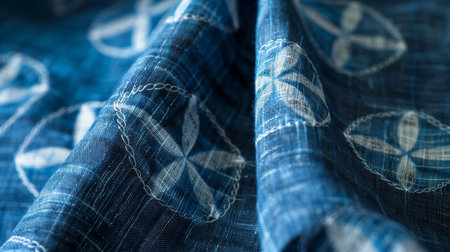 A detailed image of traditional Japanese shibori fabric with delicate white and blue patterns. generative ai