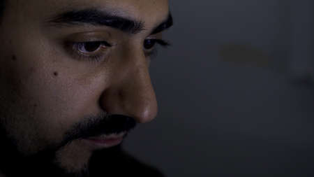Illegal man in the dark prison. Close-up portrait
