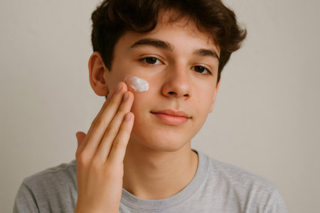 Young man applying cream on his face as part of his daily skincare routine, promoting healthy skin and self care practices