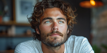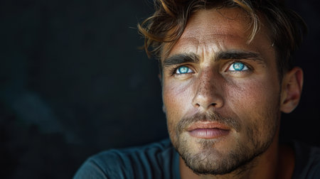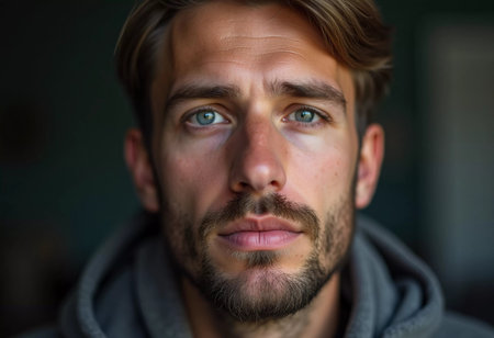 Intense gaze of a rugged man with facial hair
