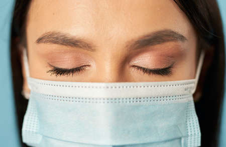 close up. a young woman in a protective mask