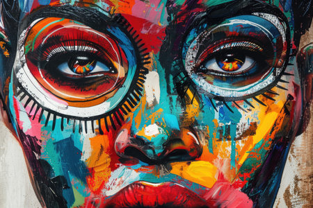 Vibrant colors and intense expression evoke emotion in a captivating artistic portrayal