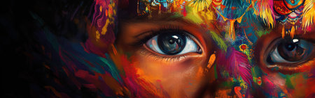 A child's face radiates with color, showing a blend of bright hues and artistic patterns. This lively depiction captures innocence and wonder, inviting joy and imagination.