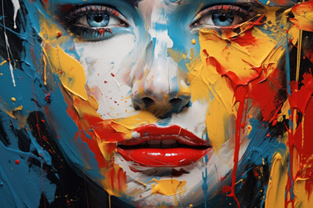 Vibrant portrait painting of a woman's face, highlighting bold colors and dynamic brush strokes, creating a captivating visual experience of artistic expression