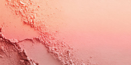 Smear of crushed pink blush on as sample of cosmetics product, copy space, top view