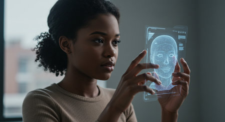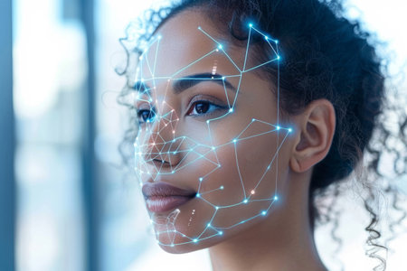 Medium shot showcasing facial recognition technology in action emphasizing privacy protection and preventing unauthorized data usage.