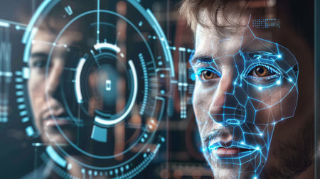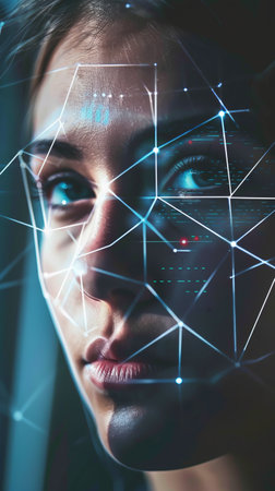 Futuristic Facial Recognition Technology Concept with Augmented Reality Interface and Digital Mapping