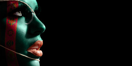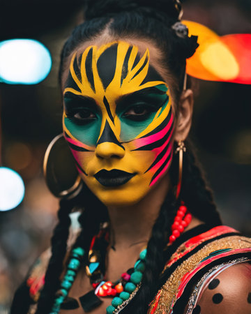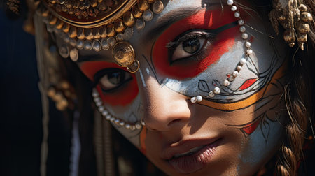 cropped shot of a woman wearing traditional face paint while standing outdoors, created with generative ai