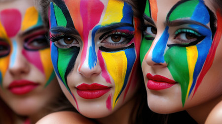 Colorful Powder on Faces Portraying Diversity and Emotion