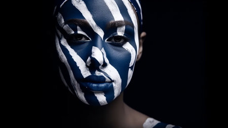 Art photo of Africal woman with tribal ethnic paintings in Avatar style