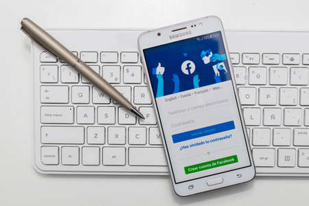 Galicia, Spain - October 29, 2019: samsung phone screen with facebook application on android system