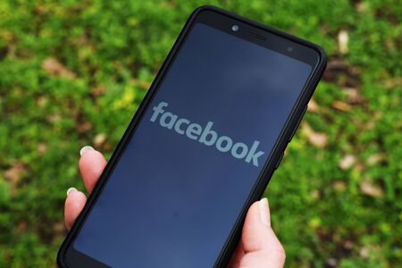 KONSKIE, POLAND - May 18, 2019: hand holding smartphone with Facebook application displayed on screen