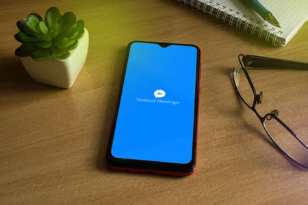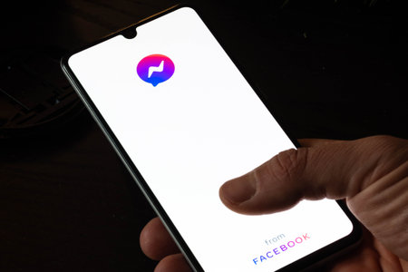 Vilnius, Lithuania - December 10 2020: Messenger icon on monitor screen. App from Facebook. Messenger down, crashed, not working