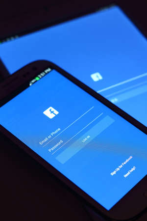 Johor, Malaysia - Feb 11, 2015: Facebook application on smart phone and tablet pc. Facebook is the world’s largest social network, Feb 11, 2015 in Johor, Malaysia.