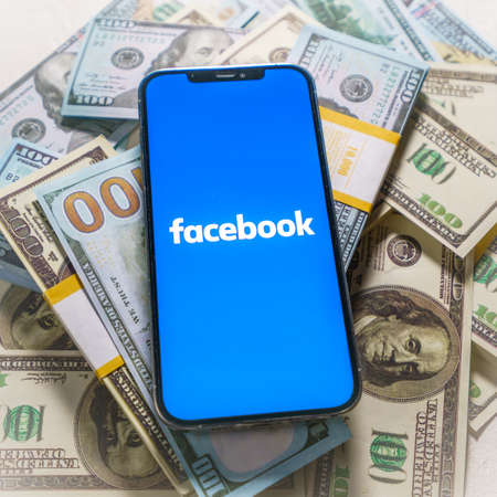 Berlin, Germany - February 02, 2022: iPhone 12 Pro Max with FACEBOOK META company logo placed on US dollar bills