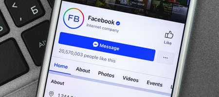 Kharkov, Ukraine - February 22, 2021: Facebook social media app official page in app, banner photo
