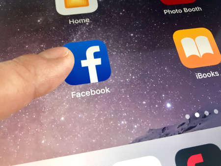 CHIANG MAI, THAILAND - OCTOBER 03, 2014: Facebook application with finger touch app close up on Apple iPad Air device.