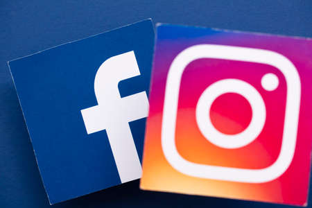 LONDON, UK - June 2021: Facebook and Instagrm logos printed onto paper