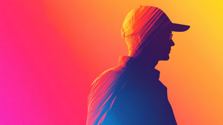 A dynamic abstract background highlights the silhouette of a delivery worker against a vibrant gradient of neon colors, creating eye-catching visual depth.