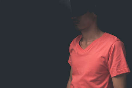 Contemporary artwork. Conceptual portrait of faceless man with words expressing a social issues and psychological problems.