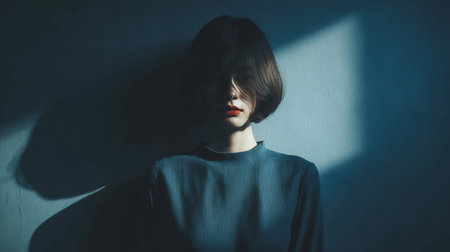 Dramatic Portrait of Woman in Shadow and Light Beam