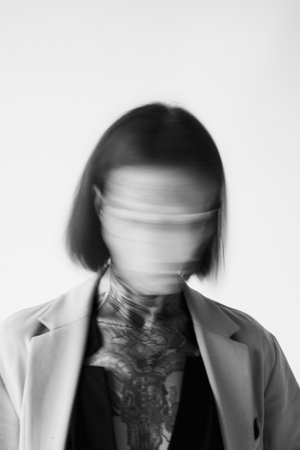 This striking image captures the essence of shifting identities using motion blur to convey the complexities of self perception and the passage of time.