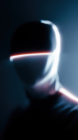 A blurred profile illustrates the theme of identity theft, focusing on stolen credentials in a dark and ominous environment.