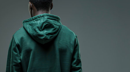 an African American person wearing a hoodie, with the hood obscuring their face, creating a mysterious and anonymous vibe.