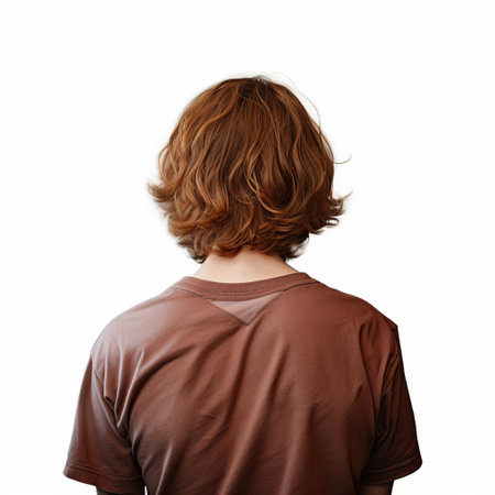 owen stands confidently with his back to the camera, showcasing his stylish wavy hair against a clean white background, creating a striking visual contrast that highlights his modern fashion sense and trendy hairstyle. ai generated