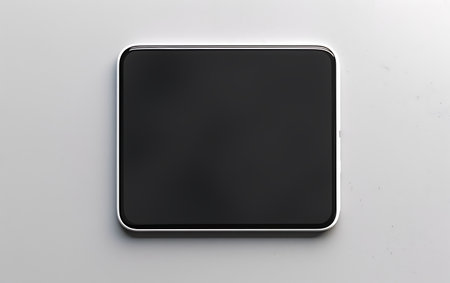 A focused, symmetrical, close-up shot capturing the illuminated screen of a digital tablet. The squa