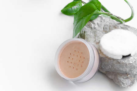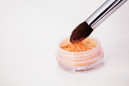 Background with mineral make up powder. Products for make up foundation and matt skin