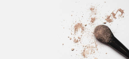 Beautiful makeup brush banner concept with powder explosion. Makeup art background