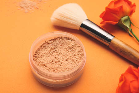 Mineral face powder and brush. Eco-friendly and organic beauty products