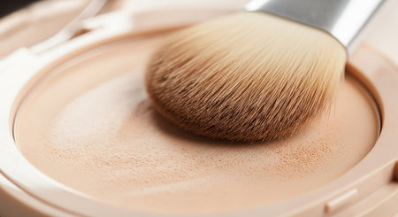 A detailed close-up image showcasing the application of foundation powder, emphasizing the texture and beauty of the skin, perfect for makeup enthusiasts and professionals.