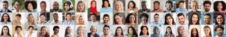 Collage mosaic of many multiracial people of different age and ethnicity faces headshots close up portraits. Lot of happy mixed multicultural diverse business people group photo collection concept.