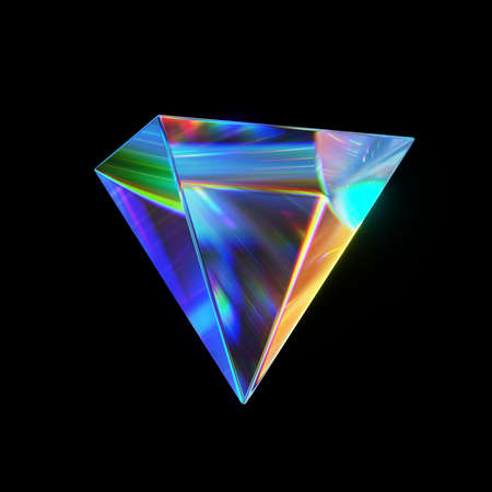 3d rendered abstract glass pyramid with detailed reflection and dispersion.
