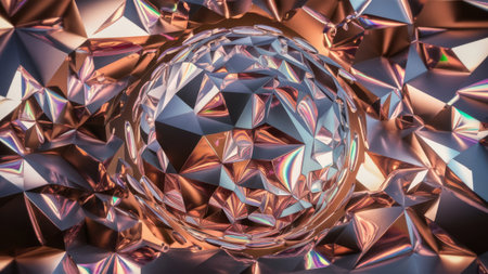 Modern geometric digital artwork evoking a cool, ethereal mood through precise angular facets and dynamic light refraction techniques. Perfect for tech interface elements, winter campaign visuals, luxury branding materials, or app backgrounds appealing to UI designers and digital artists. Its clean, scalable composition ensures seamless integration across print and w... AI-generated illustration.