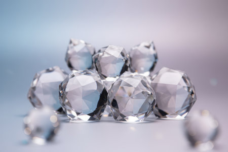 This image showcases clear gems reflecting vibrant light against a soft, colorful background, capturing the beauty and elegance of luxurious decorations. Perfect for artistic themes.