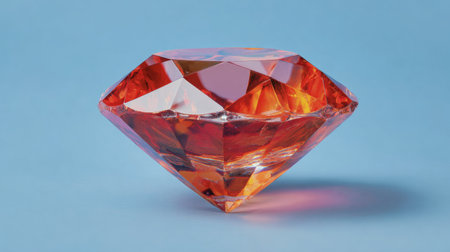 This captivating photograph features a striking orange gemstone with a faceted cut, resting elegantly on a soft blue background, embodying luxury and visual appeal.
