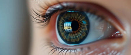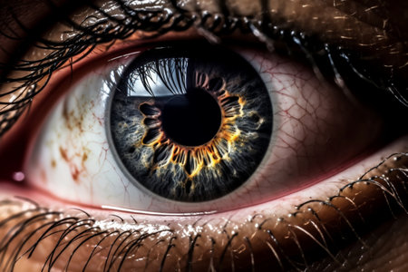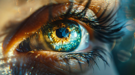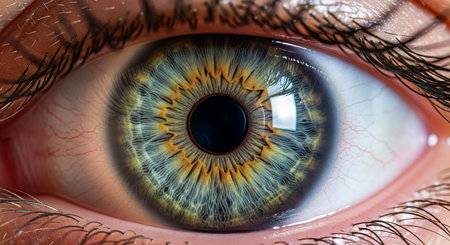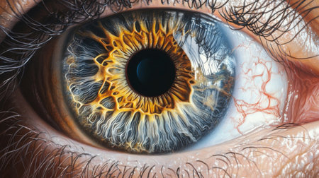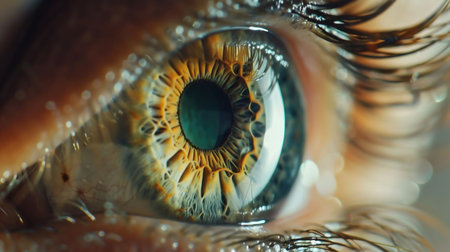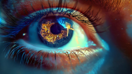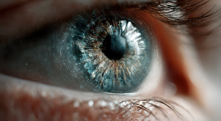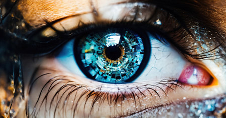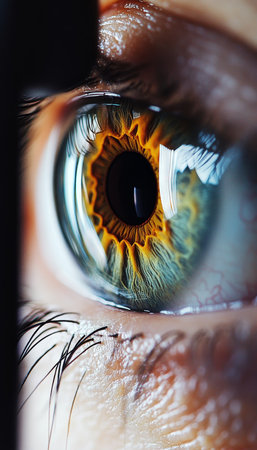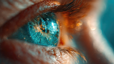 Close-up view of a human eye highlighting intricate colors and reflective details
