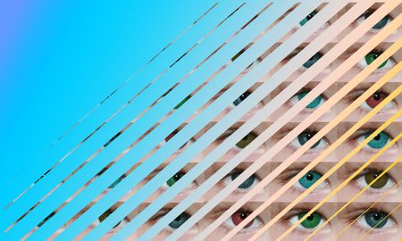 Human eye staring with a triangular geometric pattern background