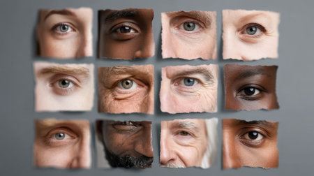 A stunning grid of close-up eye portraits highlighting the unique expressions and emotions of diverse individuals, inviting viewers to connect.