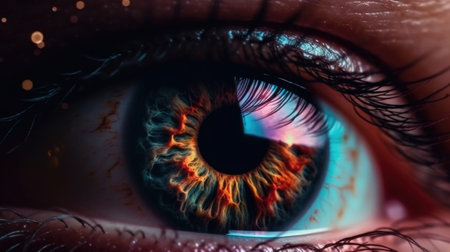 Colorful abstract close-up of a cosmic eye with glowing details