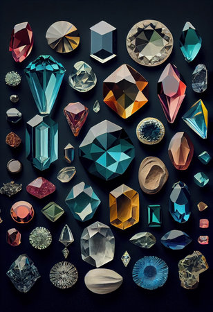Shiny gemstones diamonds crystals abstract background. Beautiful luxury wallpaper. Digital art.