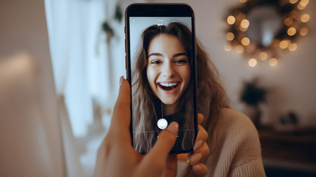 Female Video Calling Via Phone Boyfriend Celebrating Xmas Indoor, Cropped