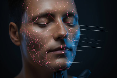 Facial scan: advanced biometric line, the detailed integration of cutting-edge technology, ensuring secure identification, and enhancing precision in modern applications of security protocols.