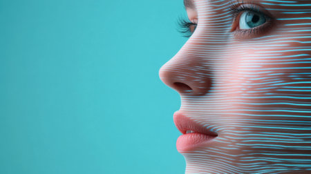 A woman with a blue background and lines on her face, AI