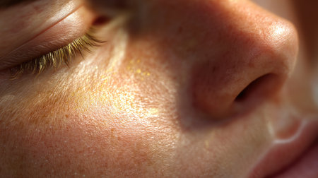This close-up image captures the intricate texture of human skin, showcasing natural light reflections. Ideal for beauty and dermatology themes, it emphasizes health and care.