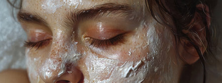 Relaxing facial mask portrait in soft focus. Created using AI generated technology and image editing software.