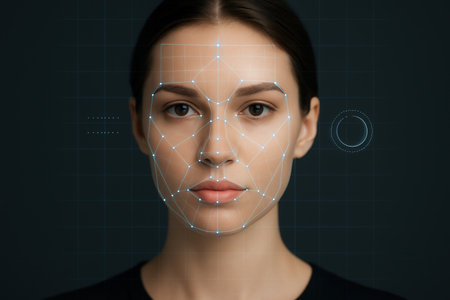 Medium shot showcasing facial recognition technology in action emphasizing privacy protection and preventing unauthorized data usage.